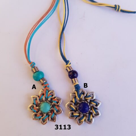Γούρι με κεραμεική χάντρα και πλεγμένο με νήμα μεταλλικό στοιχείο με γυάλινη χάντρα